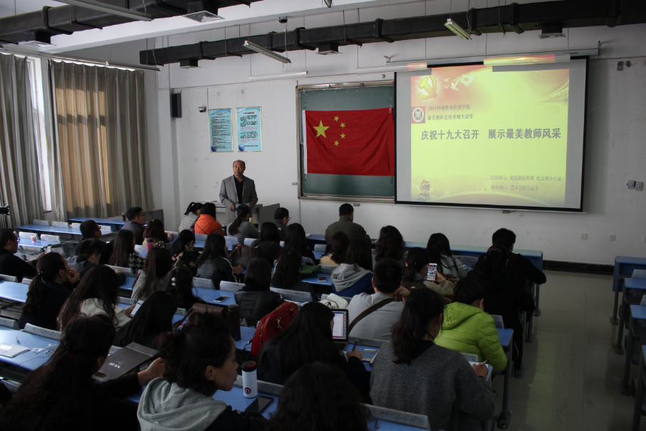 为进一步弘扬立德树人、爱岗敬业、为人师表、严谨笃学的高尚师德,营造尊师重教的浓厚氛围,发挥学校“最美教师”的示范引领作用,用身边的先进典型激励鼓舞和教育身边人,为庆祝党的十九大胜利召开营造良好的宣传舆论氛围,根据学校庆祝党的十九大召开总体宣传活动安排要求,pg娱乐电子游戏官网入口于11月2日下午,在龙子湖校区1号教学楼304举行了“庆祝十九大召开 展示最美教师风采”--“最美教师”走进“道德讲堂”活动。会议活动由院党总支书记王在钦主持。