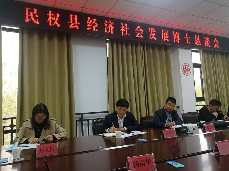 成立大会会后宗建伟和杨雨华博士参加了民权县经济社会发展博士恳谈会,首先民权县副县长张士彬介绍了民权县的发展和产业结构状况,建议博士团成员发挥各自的专业优势和团队优势,建言献策。其后民权县农业农村局局长张友永主要从湿地、林业、农田、农产品加工等方面发展现状、取得的成绩、面临的问题进行了详细介绍。最后,在座谈会上,两位博士结合民权县实际情况指出,以生态为内在线索,从湿地水生态保护到湿地生态文化旅游的建构与认同策略,从民权县农林水田到生命共同体理论与现实问题等不同角度,探索和挖掘与民权生态旅游、古黄河文化旅游的相关专业问题,为加快推进民权规划建设、乡村振兴等方面提出意见和建议。最后,两位博士期待河南牧业学院pg娱乐电子游戏官网入口与民权县在教育、科技、农业、人才培训、文化、旅游等方面开启校地合作,同时谋求更深层次的合作和交流。