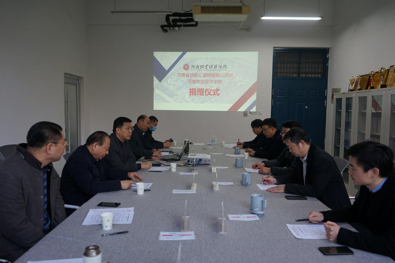 12月10日上午,pg娱乐电子游戏官网校企合作单位河南省顶级汇装饰设计有限公司与学校签订资金捐赠协议,该公司捐赠50万元用于产业学院建设工作。仪式在龙子湖校区一号教学楼200-1室举行,副校长张卫宪、“顶极汇”有限公司董事长熊书国、总经理孙希明等领导出席仪式,校财务处、社会服务办公室负责人,pg娱乐电子游戏官网入口领导班子成员等同志参加,签字仪式由社会服务办公室主任胡迎利主持。