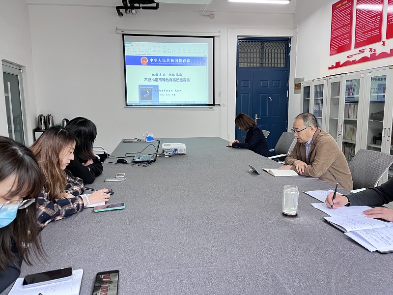 2022年4月28日下午,pg娱乐电子游戏官网入口在1号教学楼200会议室组织全体教工学习教育部高等教育司副司长武世兴作题为《把握要求 狠抓落实 不断推进高等教育高质量发展》的培训报告,报告分为线上、线下两种形式同时进行。院领导班子及全体教师参加了学习,会议由院党委书记王国辉主持。