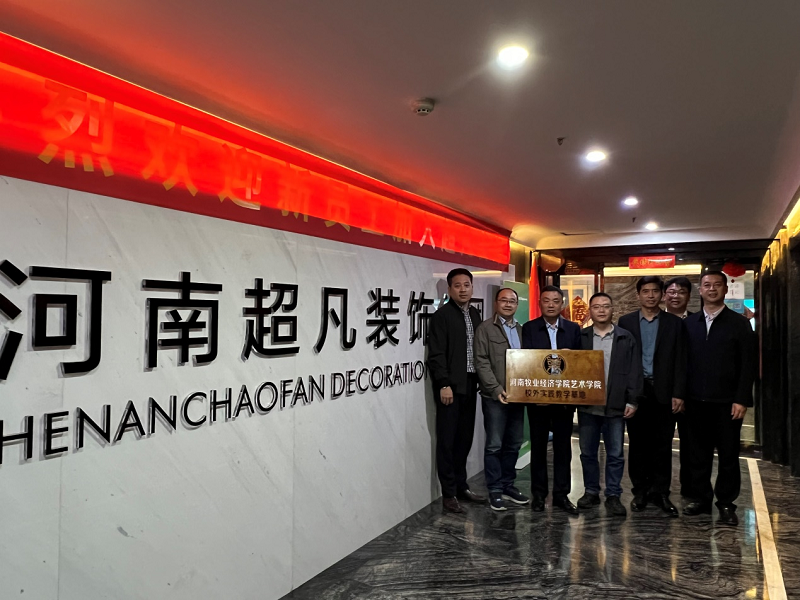 4月14日,pg娱乐电子游戏官网入口党委书记王国辉、院长张鹏、副院长田志涌、弘雅书院院长王友峰一行赴河南超凡装饰设计有限公司访企拓岗,与企业负责人进行交流座谈并进行校外实践教学基地授牌仪式。
