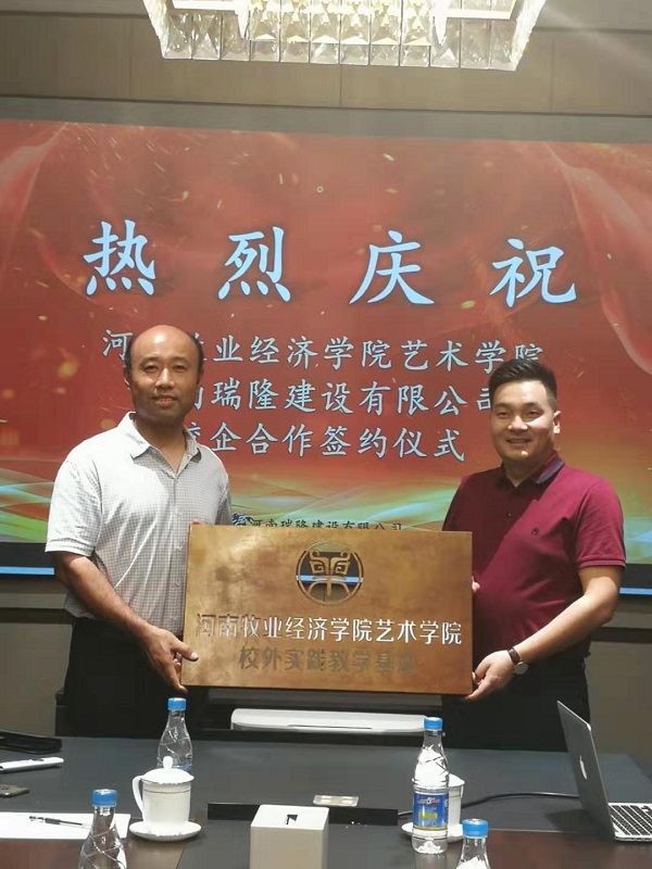 pg娱乐电子游戏官网入口党委书记王在钦为pg娱乐电子游戏官网入口pg娱乐电子游戏官网入口校外实践教学基地授牌,瑞隆建设总经理李冰阳接牌。