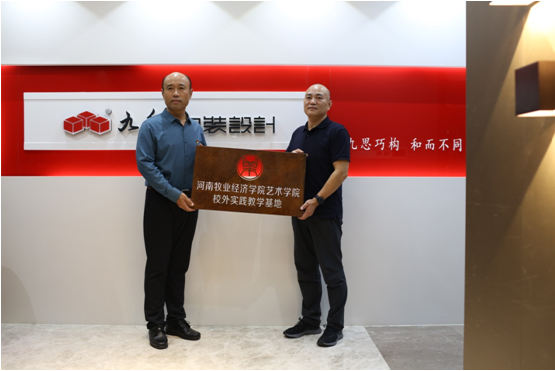 在双方的共同见证下,pg娱乐电子游戏官网入口院长张鹏与九和包装设计公司董事长王伟峰共同签署校企合作协议,pg娱乐电子游戏官网入口党委书记王在钦为九和包装公司校外实践教学基地授牌。