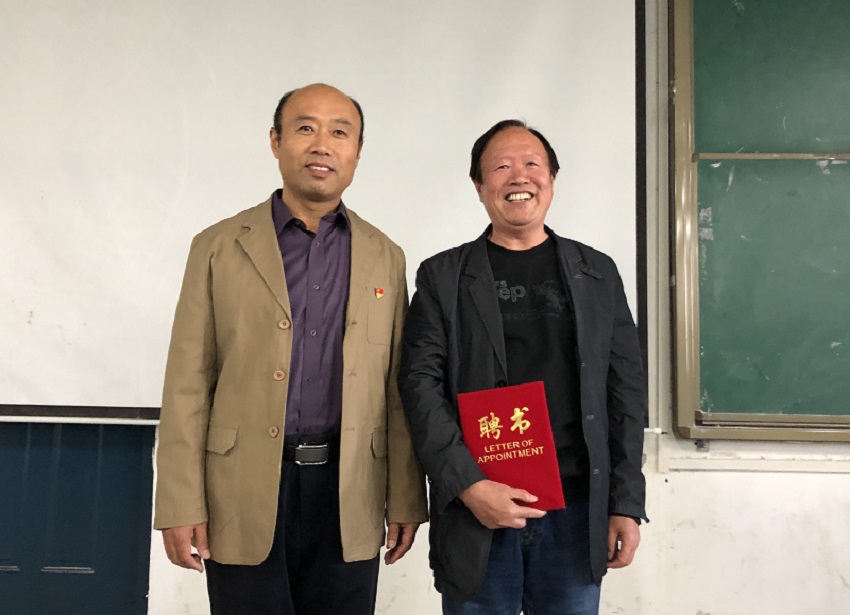 pg娱乐电子游戏官网入口党委书记王在钦向郑泰森先生颁发客座教授聘书。