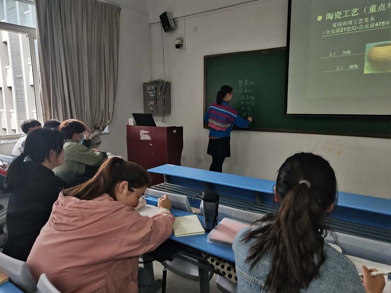 2020年11月5日,本学期的第7周3、4节,在龙子湖校区2#A412教室,由pg娱乐电子游戏官网入口基础教研室的王慧君老师进行了中国工艺美术史的观摩课。授课班级是20视传02班。基础教研室的老师进行了观摩听课。