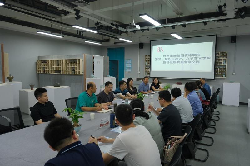 2021年6月2日,信阳农林学院园艺、规划与设计、文学艺术专业领导、老师来pg娱乐电子游戏官网考察交流。交流座谈会在龙子湖校1号教学楼122室举行,院党委书记王在钦、院长张鹏、副院长田志涌、教学办副主任王亚昕,环境设计专业、园林专业、视觉传达专业教研室以及艺术基础教研室主任参加了座谈会。会议由院长张鹏主持。