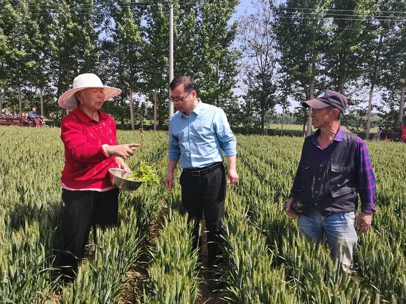 宗建伟博士首先对黄集村乡村绿化和农村人居环境进行了调查,针对乡村园林植物过于单一的问题,建议充分挖掘当地乡土植物,适当在村民房前屋后栽培花木和果树,在路旁、村旁、宅旁等边角地带进行小型、微型绿地建设,多形式、全方位地扮美村庄面貌。随后,宗建伟博士前往黄集村小麦辣椒套种种植进行田间考察。在察看小麦田间长势、预留行情况后,与当地种植户进行了交流。宗建伟博士针对小麦和辣椒共生期的管理提出了建议:定植前,一次性施入腐熟有机肥及三元复合肥最佳;辣椒喜生茬,不宜连作,不宜种植在排水不畅容易积水的低洼地;辣椒主根不发达,根群多分布在浅土层中,为促进小辣椒多生根,在浇足定植水后5~7 d及时浇缓苗水。