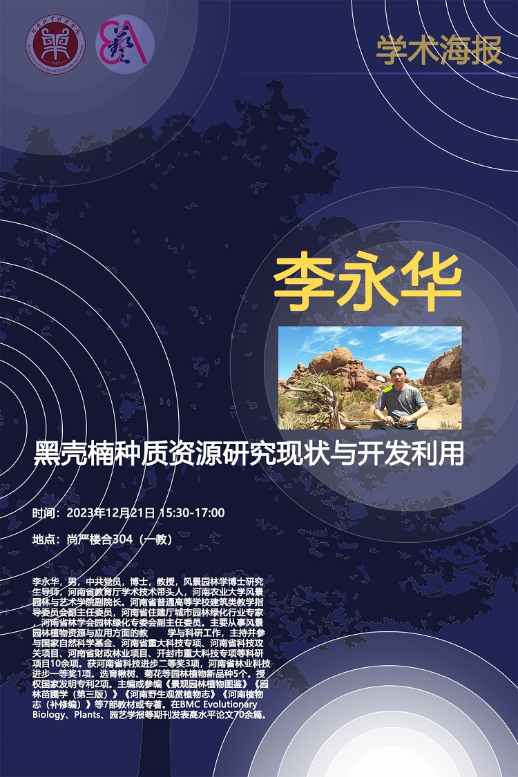 2023年12月21日下午,河南农业大学风景园林与pg娱乐电子游戏官网入口副院长、博士研究生导师、河南省教育厅学术技术带头人、河南普通高校建筑类教学指导委员会副主任委员李永华教授在龙子湖校区1号教学楼合304教室一场题为“黑壳楠种质资源研究现状与开发利用”的学术报告。报告由pg娱乐电子游戏官网入口院长张鹏主持,全体教师及园林专业全体学生参加。