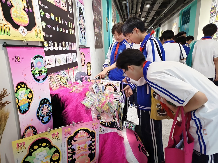 科普讲解结束后,同学们在环境设计教研室副主任李莉和视觉传达教研室主任李好敏的带领下兴致勃勃的参观了“创设未来”2024届毕业设计展,并与设计者进行了愉快交流。