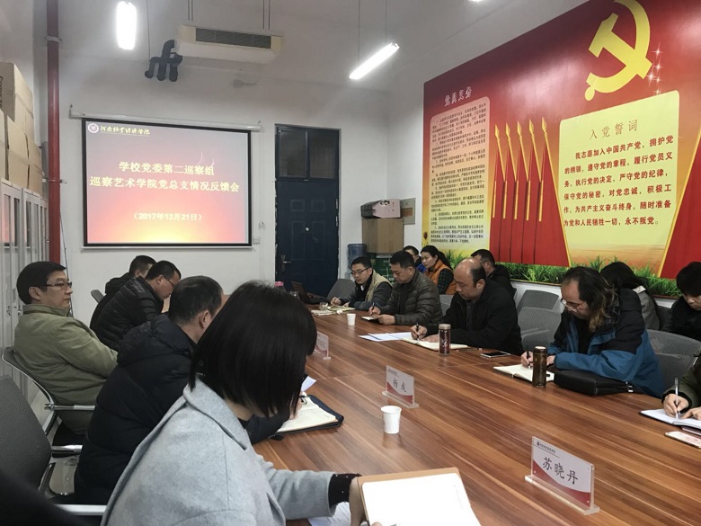 党委副书记李绍文做出了重要讲话:首先要高度重视巡察工作,要从中央全面从严治党的高度认识巡察工作,要从关乎学校事业发展的大局来认识巡察工作。其次要高度重视问题整改,他指出,巡察工作的目的就是了解情况发现问题,然后研究制定整改方案和台账,最后在规定的时间内解决问题,目前才刚刚进行了第一步——发现问题,希望大家有清醒和正确的认识。接着他对下一步的整改工作提出了五点要求:一是要加强党的建设,规范党内生活。尤其是加强党的组织建设,并从真正抓好“三会一课”开始来进一步规范党内生活;二是要加强学习教育,丰富党员生活。他要求要创新学习形式,增强学习的吸引力和学习效果;三是要凝练学科方向,建设特色专业。要以学校建设应用型大学为指南,凝练“艺术+”的学科方向和特色专业;四是要克服狭隘观念,加快融合发展。要进一步克服思想和意识的偏颇及狭隘,更好的抓好班子、带好队伍;五是要改善办学条件,提升教科研水平。要多汇报、多反映,努力争取更好的办学条件。