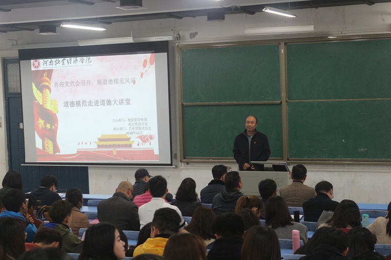 为进一步弘扬“不忘初心、立德树人”的师德师风,营造尊师重教的浓厚氛围,发挥学校“道德模范教师”的示范引领作用,用身边先进模范教师典型事例激励鼓舞全院教职工,真正做到“学高为师,身正为范”,以优异成绩迎接学校党代会的胜利召开。根据学校《关于展开2018“十佳道德模范”走进“道德讲堂”活动的通知》要求,pg娱乐电子游戏官网入口于11月22日下午,在龙子湖校区1号教学楼400举行了“道德模范”走进“道德大讲堂”活动。pg娱乐电子游戏官网入口全体教工党员、学生党员、入党积极分子220余人参加了活动。活动由院党总支书记王在钦主持。