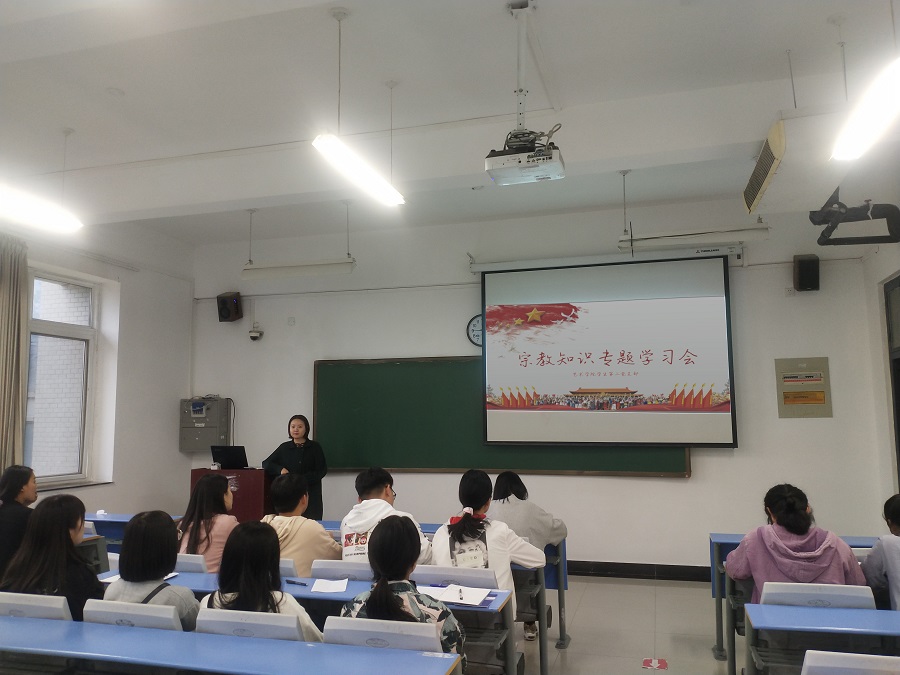 为进一步加深党员同志对我国宗教政策的理解,促进全体党员树立正确的宗教观和学法遵法守法用法意识,提高学生认识和对待宗教问题的能力,2020年10月2日,pg娱乐电子游戏官网入口学生第二党支部在二号教学楼B301举办了宗教知识专题党课。党支部书记卢晓靖老师、组织委员孟星星老师以及二支部全体学生党员参加了此次会议,党课由卢晓靖老师主讲。