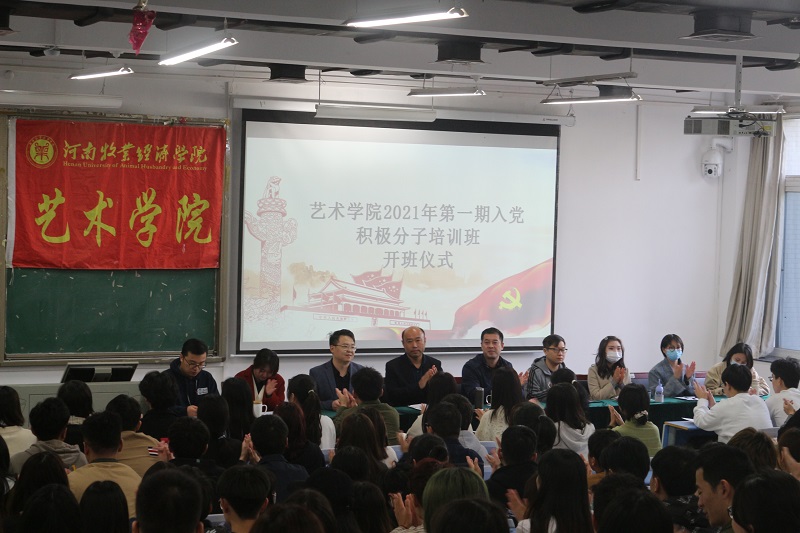 2021年4月17日上午10:00于pg娱乐电子游戏官网入口龙子湖校区合300举行pg娱乐电子游戏官网入口2021年第一学期入党积极分子培训班开班仪式。pg娱乐电子游戏官网入口党委书记王在钦,党委副书记王友峰、学生第一支部书记韩飞、第二支部书记卢晓靖以及学生党支部的全体支委老师出席了此次仪式,pg娱乐电子游戏官网入口150名入党积极分子参加了此次开班仪式,仪式由韩飞老师主持。