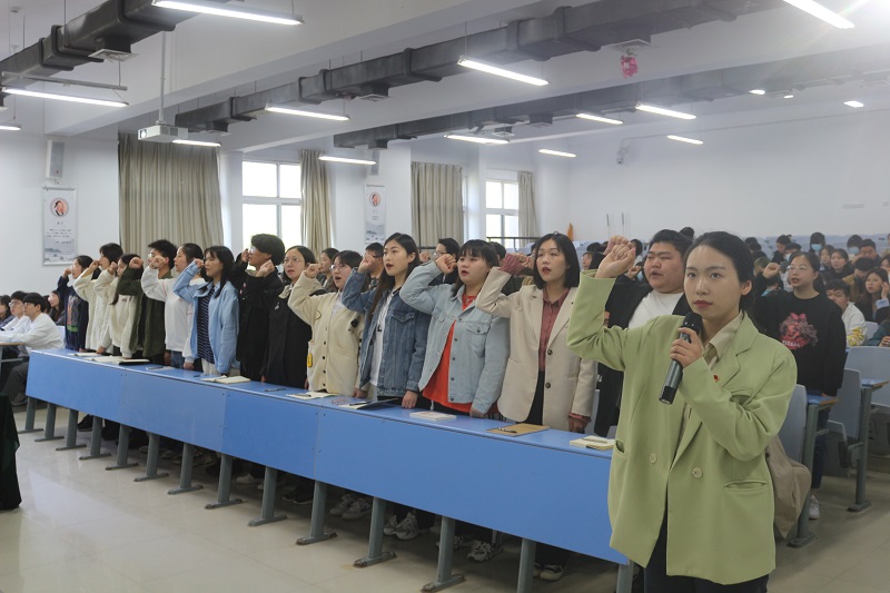 2021年4月17日,pg娱乐电子游戏官网入口pg娱乐电子游戏官网入口在龙子湖校区1号楼300教室隆重举行pg娱乐电子游戏官网入口新党员宣誓仪式。学院党委书记王在钦、党委副书记王友峰、学生第一党支部书记韩飞、组织委员屈普、宣传委员王梦如;学生第二党支部书记卢晓靖、组织委员王霜、宣传委员孟星星及辅导员李绅出席本次活动。同时观摩本次宣誓仪式的还有全院所有的学生正式党员、预备党员、本期的58名发展对象和本期150名积极分子,本次仪式由韩飞老师主持。