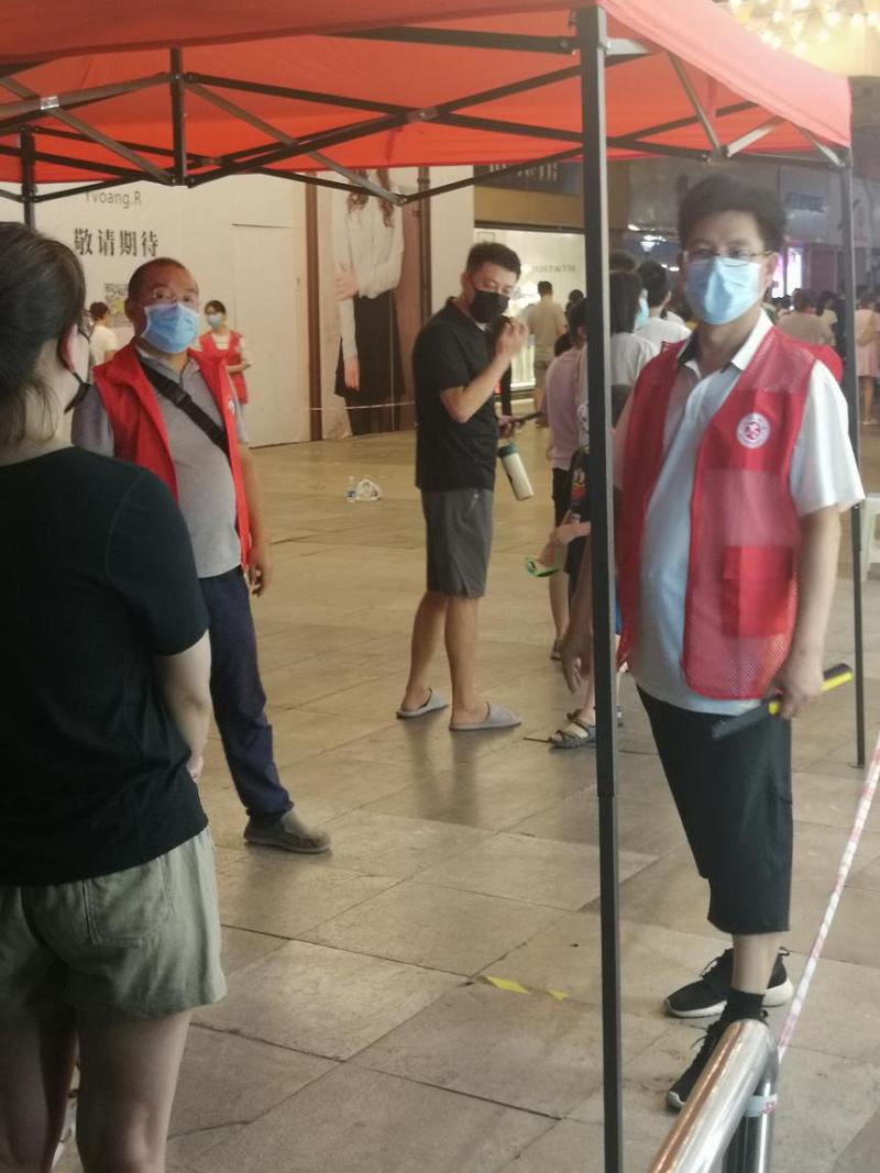 近日,郑州市多个区域相继出现新冠肺炎疫情本土病例,疫情防控形势异常严峻。pg娱乐电子游戏官网入口师生党积极响应学校党委、学院党委号召,积极投身疫情防控志愿者服务。pg娱乐电子游戏官网入口委书记王在钦主动向郑州市中原区三官庙街道湖光苑社区报名参加社区核酸检测志愿者,从2021年8月5日下午2:30到6日凌晨2:00,王在钦在核酸检测现场连续工作11个半小时,累得两条腿已不听使唤;6日下午又继续参加核酸检测的志愿者活动。