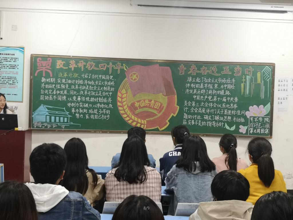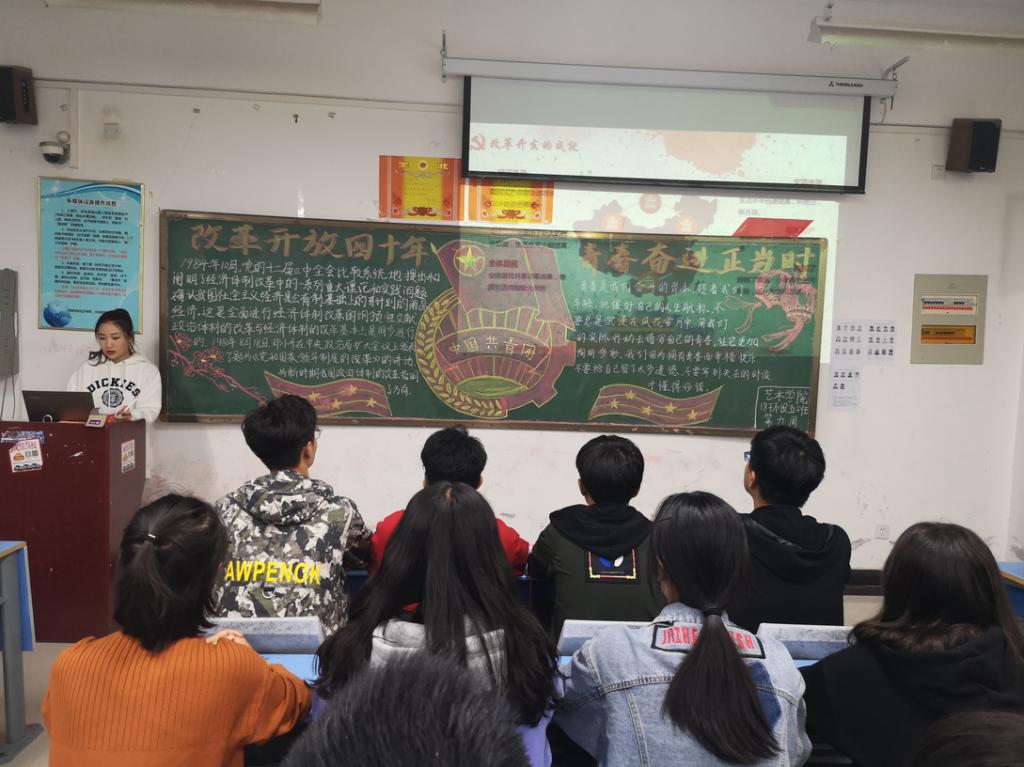 2018年11月1日下午7:00——8:00,pg娱乐电子游戏官网入口pg娱乐电子游戏官网入口在龙子湖校区一号教学楼举行了以“改革开放四十年,青春奋进正当时”为主题的团课,本次团课由大一全体班级参加!