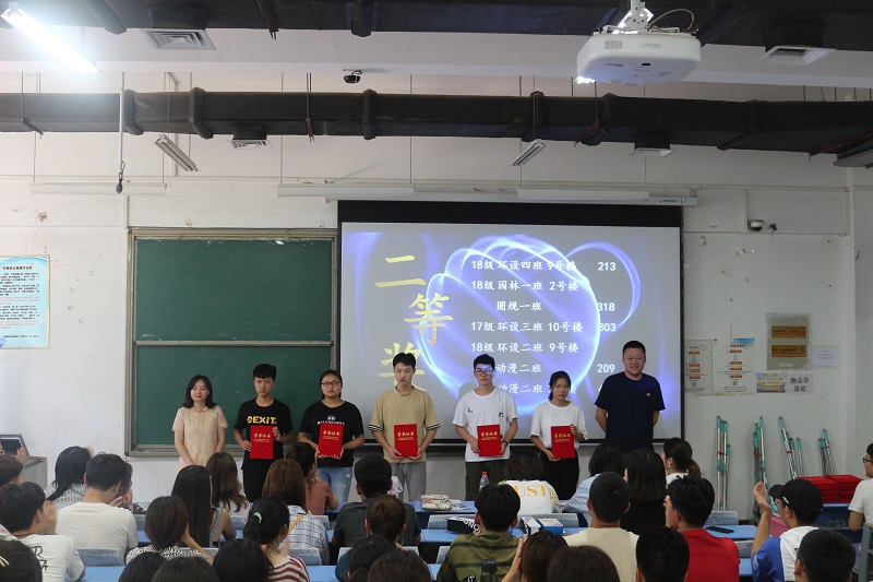 活动开始,主持人先是介绍了整个活动过程,从筹备到检查,最后系统整理。韩飞老师随后公布了获奖名单,经过层层筛选,本次艺术节共有35个宿舍分别获得一二三等奖和优秀奖。莅临现场的老师逐一对获奖单位进行了颁奖。