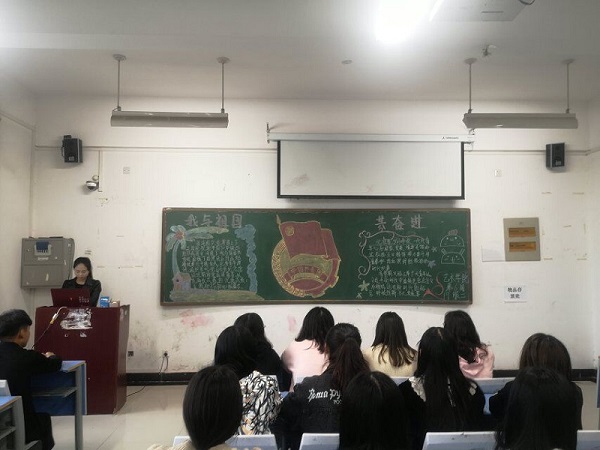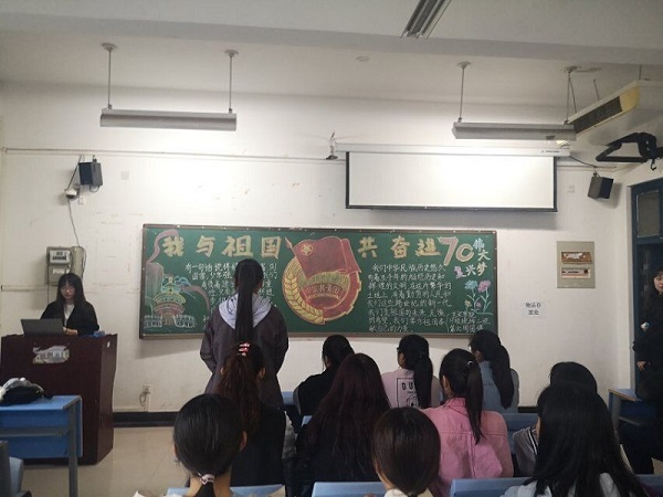 2019年10月10日下午,pg娱乐电子游戏官网入口pg娱乐电子游戏官网入口在龙子湖校区二号教学楼,举行了以“我与祖国共奋进”为主题的团课。