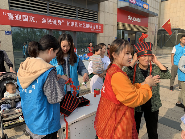 2019年9月21日,为庆祝中华人民共和国成立70周年,提高社区老年居民的身体素质和健康水平,展示志愿者们热情的精神风貌,龙子湖街道办事处知启街社区党支部与pg娱乐电子游戏官网入口pg娱乐电子游戏官网入口志愿者协会联合在知启街社区为老人们共同举办了一场“喜迎国庆,全民健身运动会”。