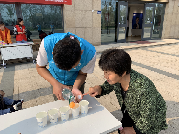 志愿者们8点半在知启街社区开始了活动前期准备工作,9点活动正式开始,居民们便踊跃报名,活动现场热闹非凡。在游戏过程中均有本院志愿者在旁边确保老人们的安全,每一个环节都是一个志愿服务的传递,能够让老人们在安全的环境中感受到游戏的快乐,在志愿者的帮扶下,比赛于11点半结束。