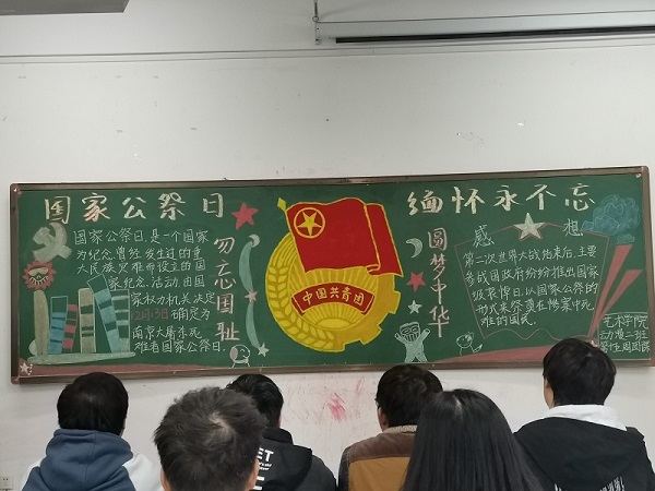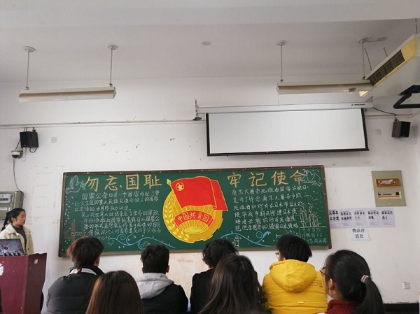 2019年12月12日,pg娱乐电子游戏官网入口pg娱乐电子游戏官网入口在龙子湖校区二号楼,举行了以“国家公祭日”为主题的团课。本次团课,由大一全体同学参加。