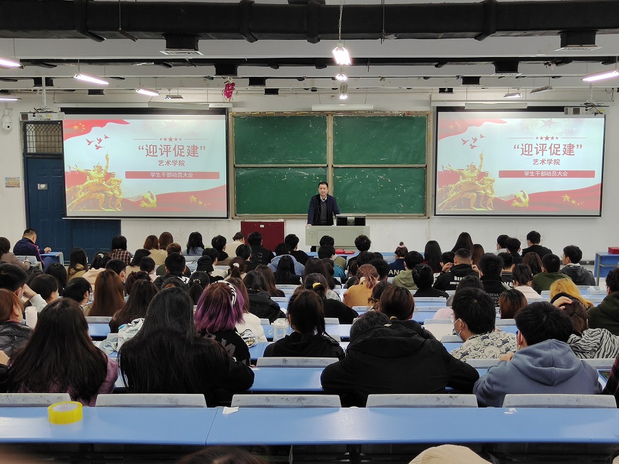 会议开始,韩飞老师首先通报了学校预评估工作的基本情况,强调本科评估工作的重要性和紧张性,带领参会的团学会成员和学生干部学习了本科教学水平评估工作的目的和意义。要求全体学生牢固树立与学校同呼吸、共命运的主人翁意识,积极主动地投身到迎评促建工作中来。