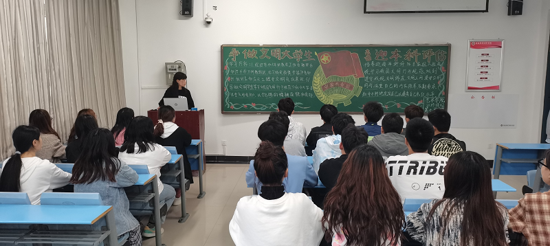 2021年4月22日下午,pg娱乐电子游戏官网入口pg娱乐电子游戏官网入口在龙子湖校区二号教学楼举行了以“争做文明大学生,喜迎本科评估”为主题的团课。本次班会由大一新生全体班级参加。