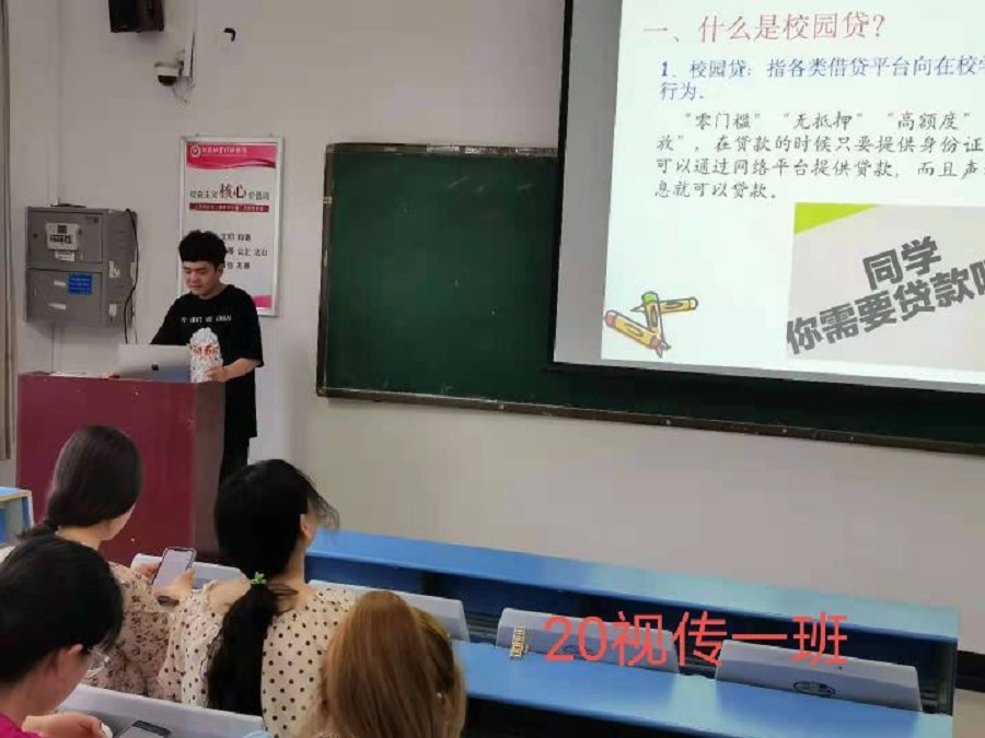 为帮助在校学生增强校园贷风险防范意识,提升自我防护能力, pg娱乐电子游戏官网入口于2021年5月6日-13日分班级召开以“理性科学消费 拒绝校园网贷”为主题的校园贷风险防范专题教育宣讲活动。