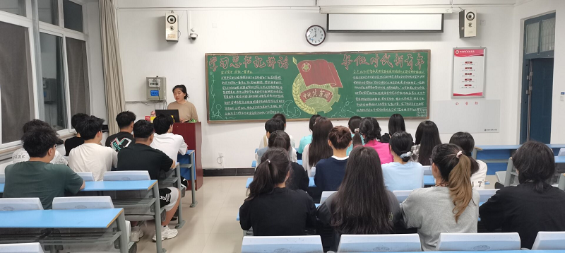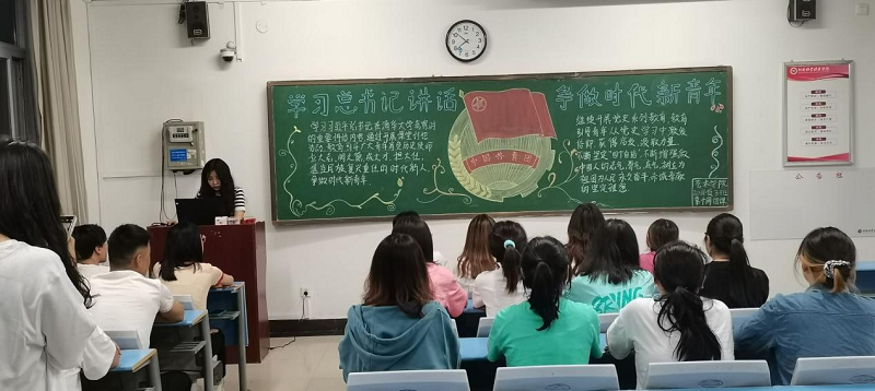 2021年5月13日,pg娱乐电子游戏官网入口pg娱乐电子游戏官网入口在龙子湖校区二号教学楼举行了以“学习习近平总书记讲话,争做时代新青年”为主题的团课。本次团课由大一全体同学参加。