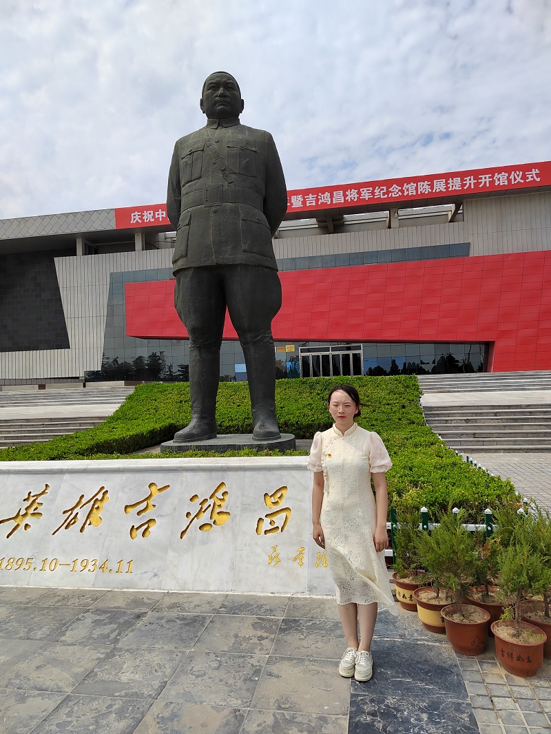 为推动党史学习教育深入开展,教育引导广大学生“不忘初心,牢记使命”,进一步增强学生的使命感和责任感,7月13日,pg娱乐电子游戏官网入口学生刘畅来到吉鸿昌将军纪念馆,接受红色革命文化教育和爱国主义精神的熏陶。