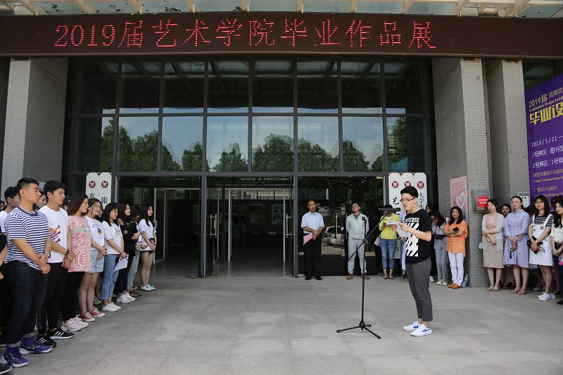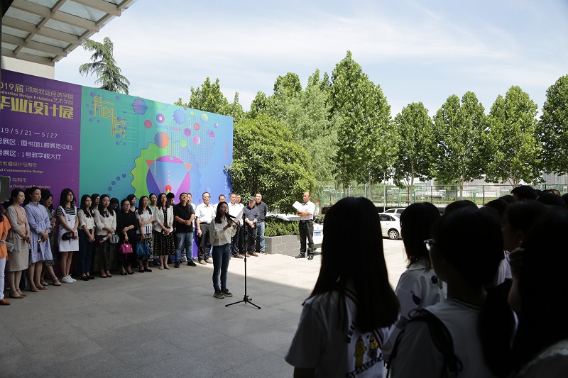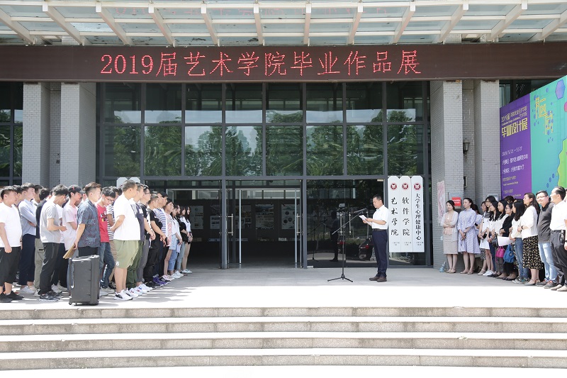 5月21日上午,pg娱乐电子游戏官网入口2019届毕业设计作品展开幕式在龙子湖校区1号教学楼门前广场顺利举行。pg娱乐电子游戏官网入口班子成员、教师代表以及2019届毕业生500余人参加,pg娱乐电子游戏官网入口党总支书记王在钦主持开幕式并宣布展览开幕。